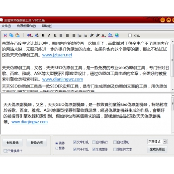 天天伪原创工具,又名,天天SEO伪原创工具,是一款免费的专业seo伪原创工具